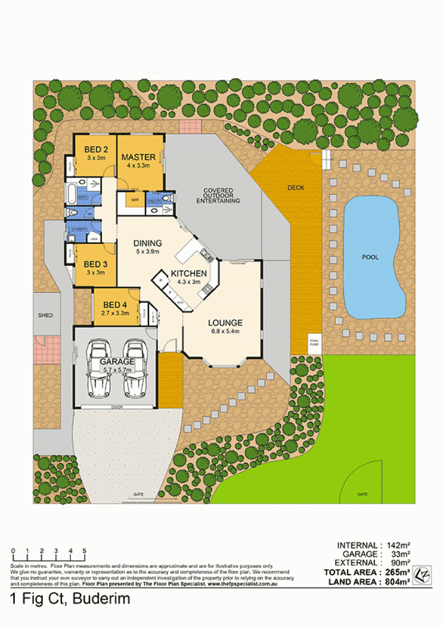 The main driveway leads into the double garage with internal access as well as a glass sliding door to the side of the house. Although the block is a large 804sqm, the gardens are low maintenance and easy care with an area where the kids can kick a ball.