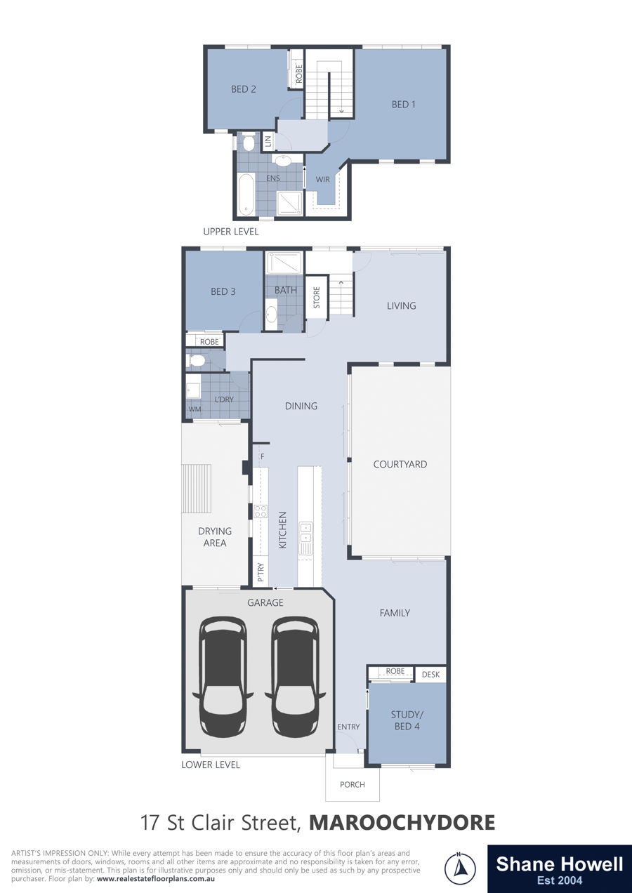 Designed for entertaining the ground floor features a spacious indoor/outdoor living area's, adjoining a level grassed courtyard whilst upstairs boasts Master bedroom with a nursery/4th Bedroom.