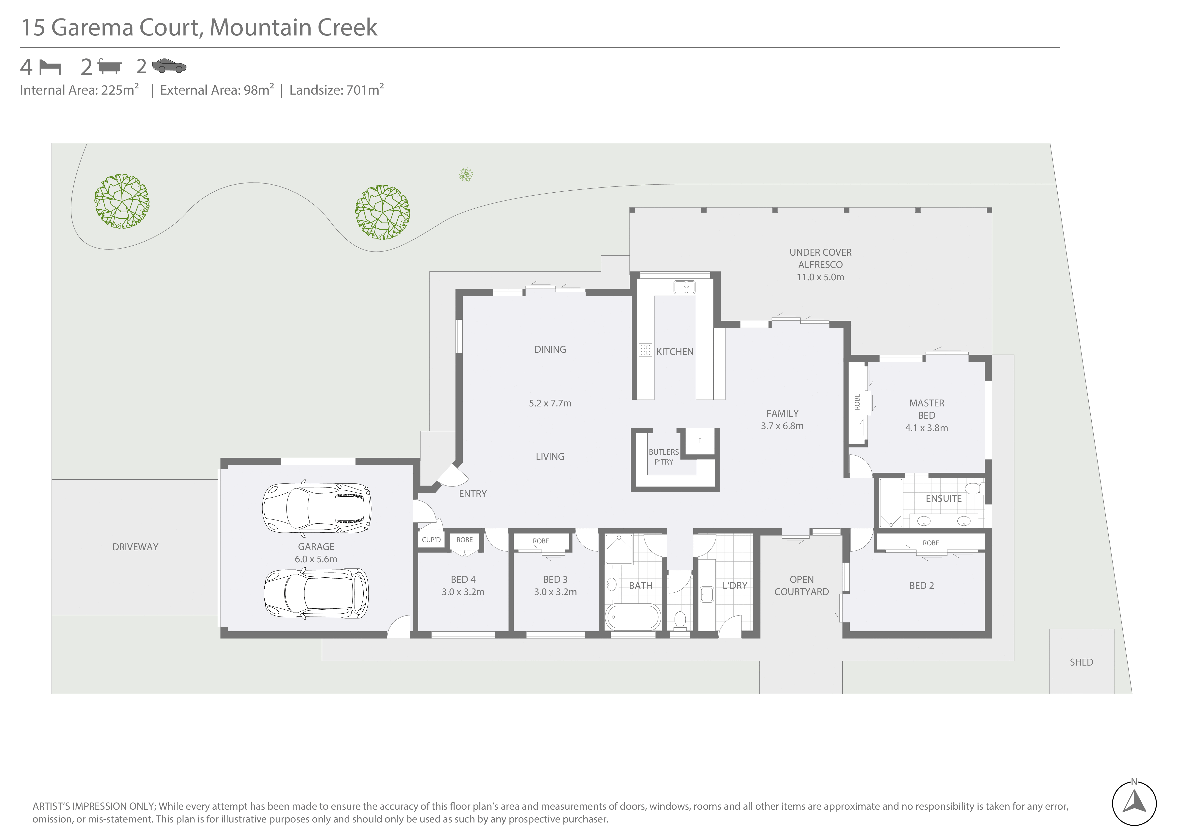 - Freshly landscaped 701m2 (approx) allotment with room for a pool (STCA)